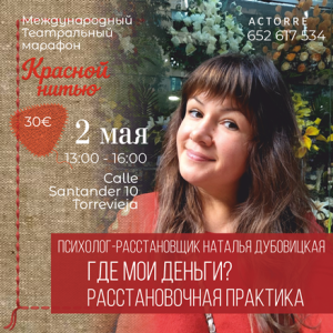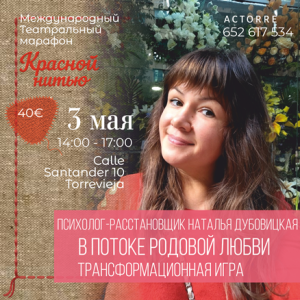 И именно поэтому в рамках фестиваля Hilos Rojos (“Красной нитью”) мы проводим два уникальных психологических события вместе с нашим партнёром Натальей Дубовицкой — расстановочную практику и трансформационную игру.